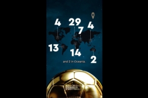 在总计100位评委中,有73人将首票投给了登贝莱,以下为各大洲具体的票数分布: