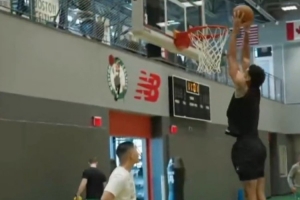 由视频可见,塔图姆已经可以在原地起跳完成双手扣篮,塔图姆配文写道:“一定是鞋子的原因👀🔥。”