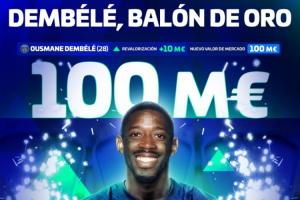 28岁的登贝莱此前身价为9000万欧元,本赛季他代表巴黎出战4场比赛贡献2球1助,而上赛季他的数据是49场比赛33球15助。凭借出色的表现和欧冠、法甲、法国杯三冠王,登贝莱也获得了今年的金球奖。